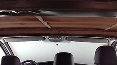J'ai donc collé le tasseau avant en plus des vis. Et puisque, dans ce camion, rien n'est droit ni facile, il faut un peu forcer pour qu'il prenne la forme du futur plafond.
