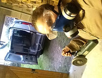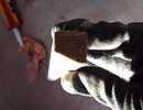 Attention, n'oubliez pas de vous protèger! Les projectiles de laine sont brûlants au contact de la scie et la poussière fait tourner la tête...