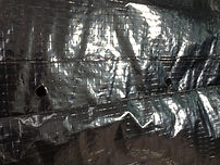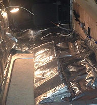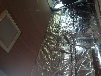 Après beaucoup de galères, de réflexions et des bras endoloris, voilà l'isolant mince posé au plafond et sur les côtés ! Une aide est nécessaire pour cette étape.
