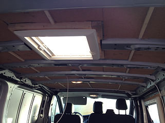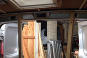 3. Mise en place des tasseaux pour fixer le plafond (un à l'avant au niveau de la cabine, 2 à l'arrière au-dessus des portes et 1 au-dessus de la porte coulissante)